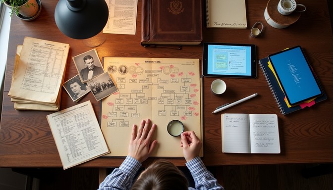 À votre domicile ou en visio, nous faisons connaissance. Puis vous me présentez votre arbre, vous m’expliquez les branches principales, les personnages clés, les périodes qui vous intéressent le plus. Enfin, ensemble, nous définissons l’angle narratif : chronologique strict ? Focalisé sur une branche ? Organisé par thématiques (migrations, métiers, lieux) ?